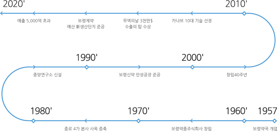 1957년 종로5가 보령약국을 시작으로 1963년 제약업을 시작한 보령제약은 ‘인류의 건강과 공존 공영’ 위한 노력을 계속해 왔습니다.