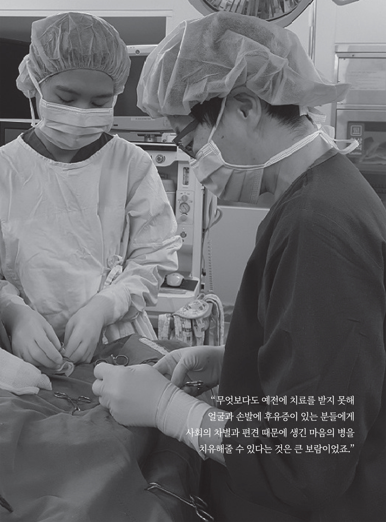“한센병은 신경질환입니다. 병이 나은 후에 신경 손상은 어쩔 수 없지만, 겉으로 보이는 장애도 크지요. 장애를 호전시키거나 티가 안 나도록 재활성형을 하는 것이 우리가 하는 일입니다.”