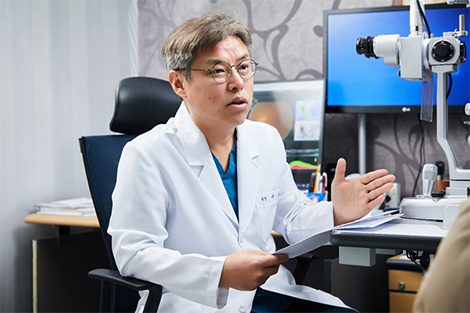 “2003년 대한전공의협의회장으로 평양을 방문한 이후 수액공장 지원 사업을 비롯해 금강산 온정인민병원, 개성공단을 드나들며 의료봉사활동을 진행한 바 있습니다. 특히 2006년 한국국제보건의료재단과 함께 참여한 금강산 온정인민병원 현대화 사업을 위해 수 차례 방문하기도 했어요. 북한 주민들에게 백내장 수술 및 각종 질환을 치료하기도 하고, 병원 측에 초음파, ARK(시력검사기계), 세극현미경 등 의료기기를 지원을 통해서 현대화하는 사업에 도움을 주기도 했죠.”
