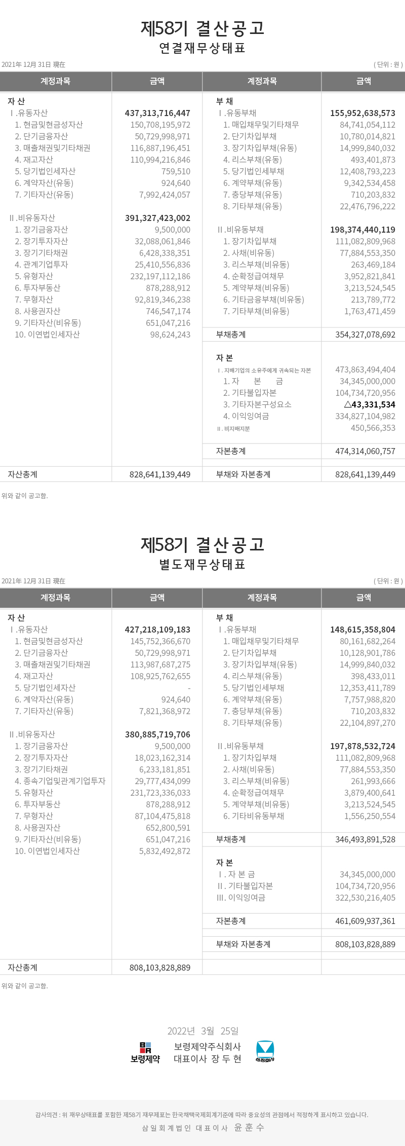 삶의 가치를 창조하는 기업 보령의 IR정보입니다.
