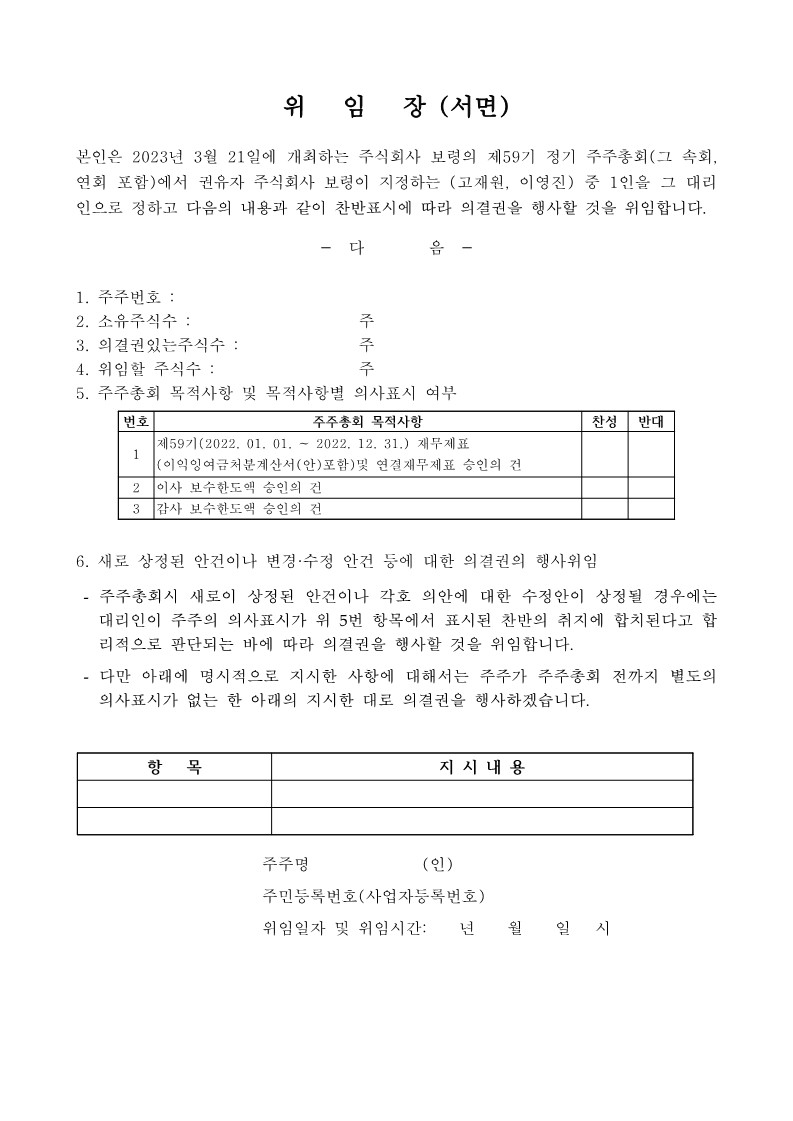 삶의 가치를 창조하는 기업 보령의 IR정보입니다.