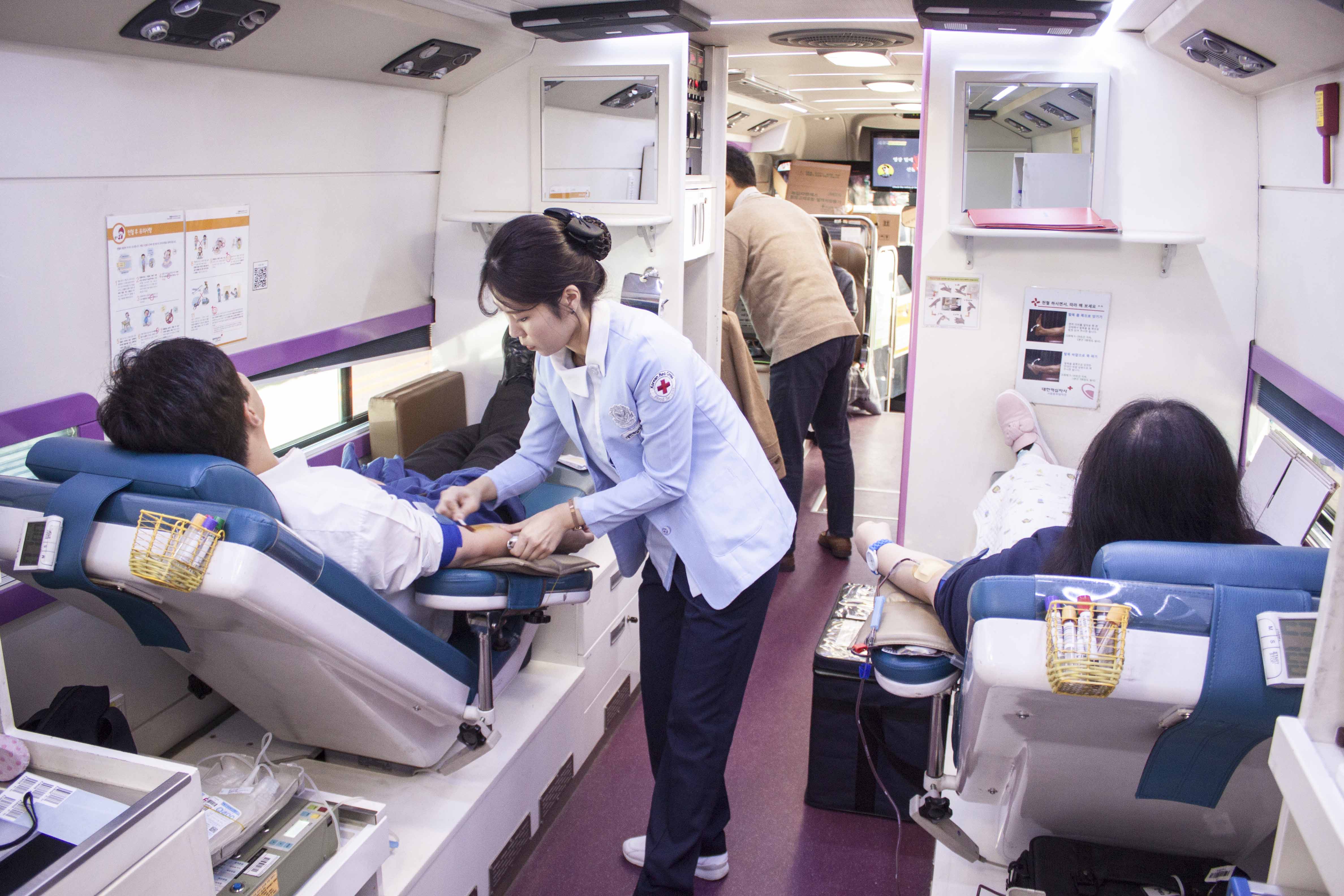 (사진설명:12일 종로구 보령빌딩에서 진행된 ‘HAPPY 헌혈데이’에서 보령제약그룹 임직원들이 헌혈을 하고 있다)