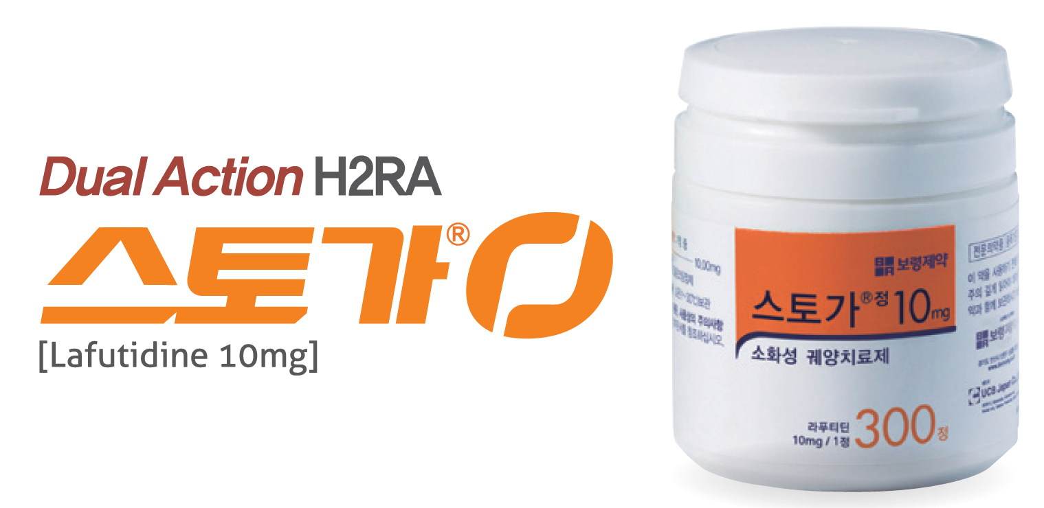 스토가는 단일 성분으로 위산분비 억제효과와 위점막 보호효과를 나타내는 라푸티딘(Lafutidine) 성분의 오리지널 약물로, H2수용체 길항제 중 최초로 헬리코박터 파이로리(H.pylori)제균 적응증을 획득한 의약품이다.