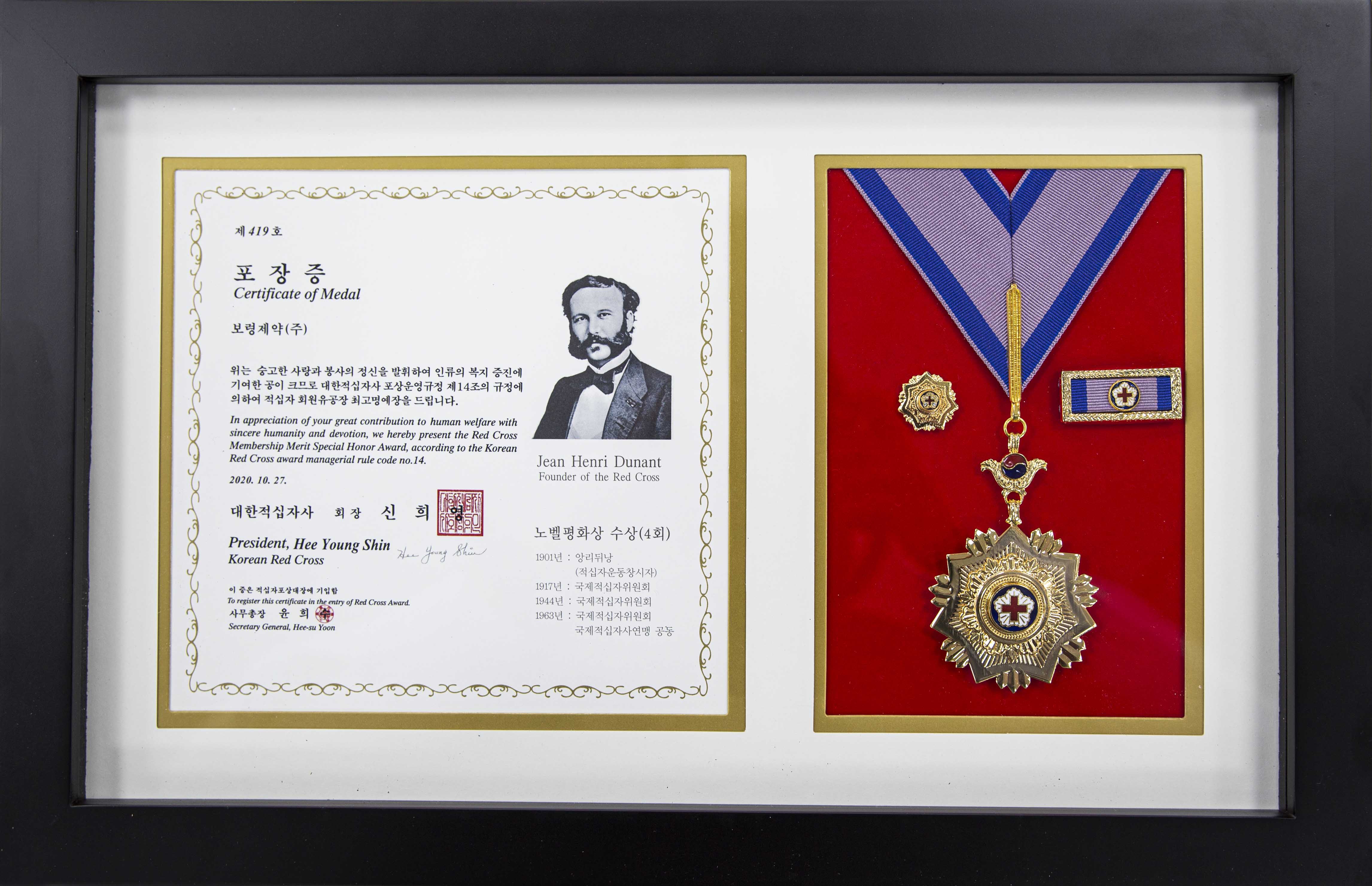 보령제약은 대한적십자사(회장 신희영)로부터 ‘적십자회원 유공장 최고명예장’을 수여받았다.