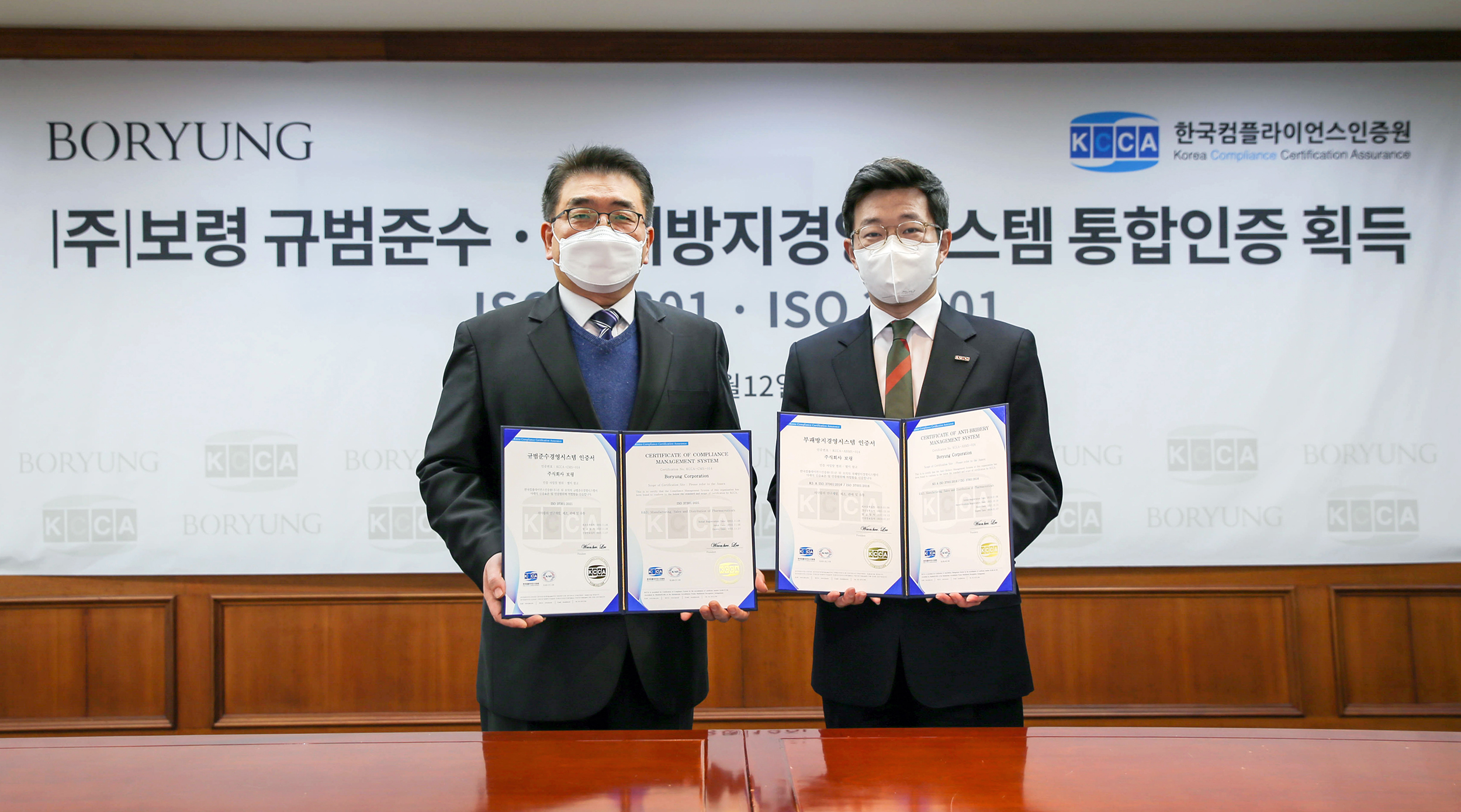 보령(구 보령제약, 대표 장두현)은 한국컴플라이언스인증원(KCCA, 원장 이원기)으로부터 규범준수경영시스템(ISO 37301)과 부패방지경영시스템(37001) 통합 인증을 획득했다고 13일 밝혔다.